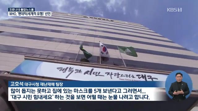 [고호석/대구시청 재난재해 팀장 : "많이 돕지는 못하고 집에 있는 마스크를 5개 보낸다고 그러면서...